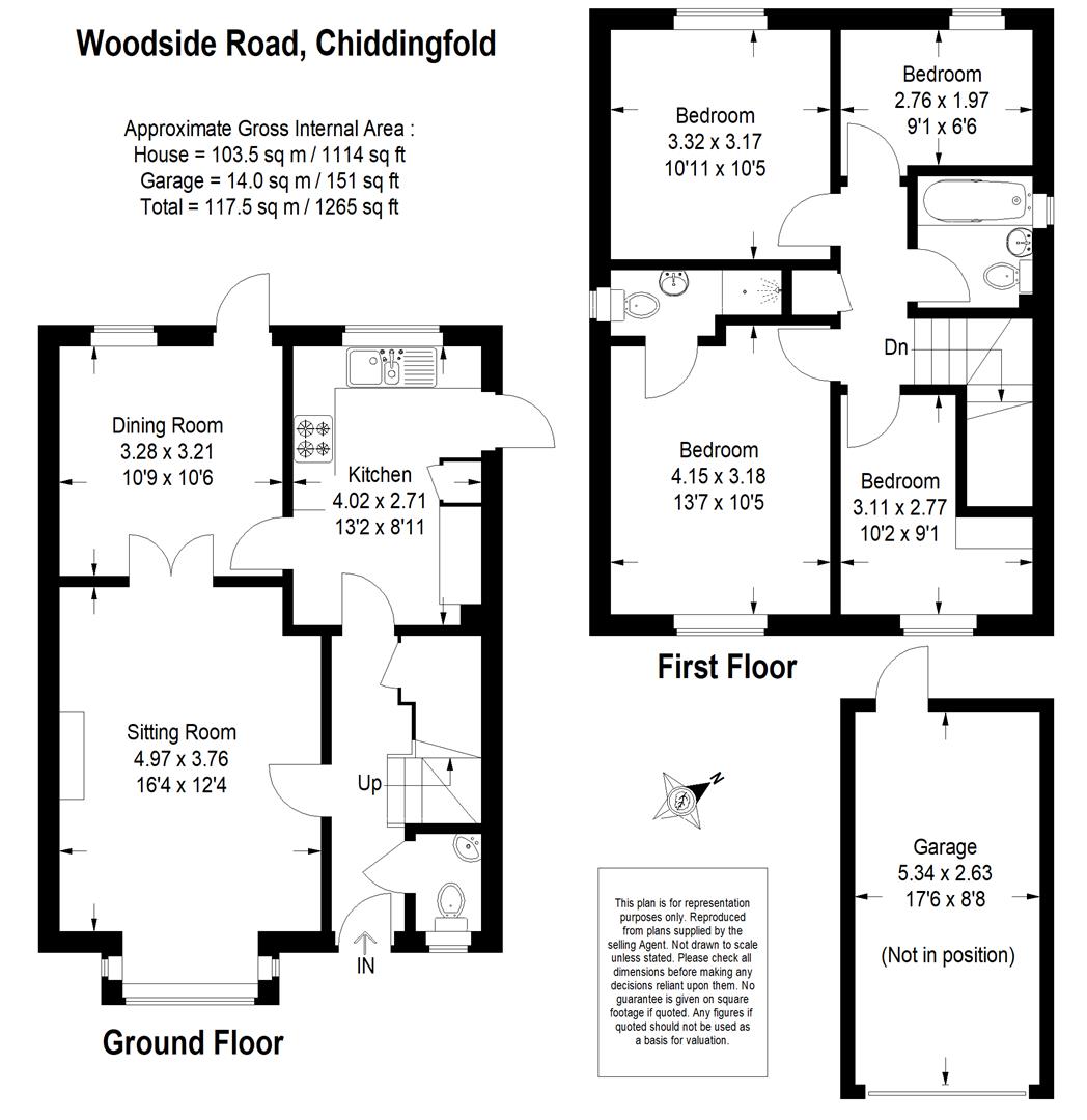 A four bedroom detached family house with garage requiring some modernising. The house is located in an established residential road within easy reach of the village centre, school and main line station to London Waterloo.
