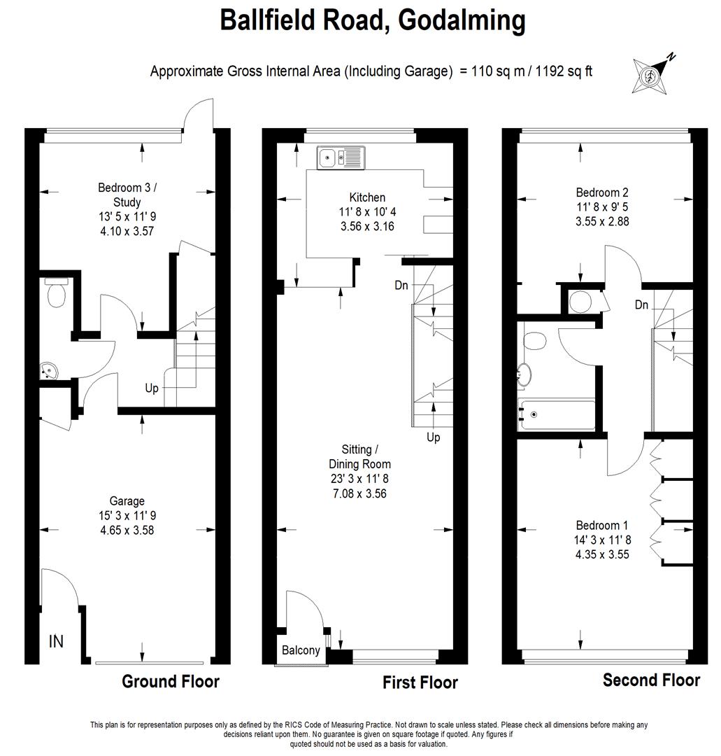 A three bedroom and three storey town house offering bright, spacious and adaptable accommodation being part of a small development of other similar properties set in over an acre of communal gardens & grounds. The house enjoys fabulous panoramic views over Godalming and is conveniently located within easy reach of the town centre and only half a mile from Farncombe main line station which offers a fast and frequent service to London Waterloo.