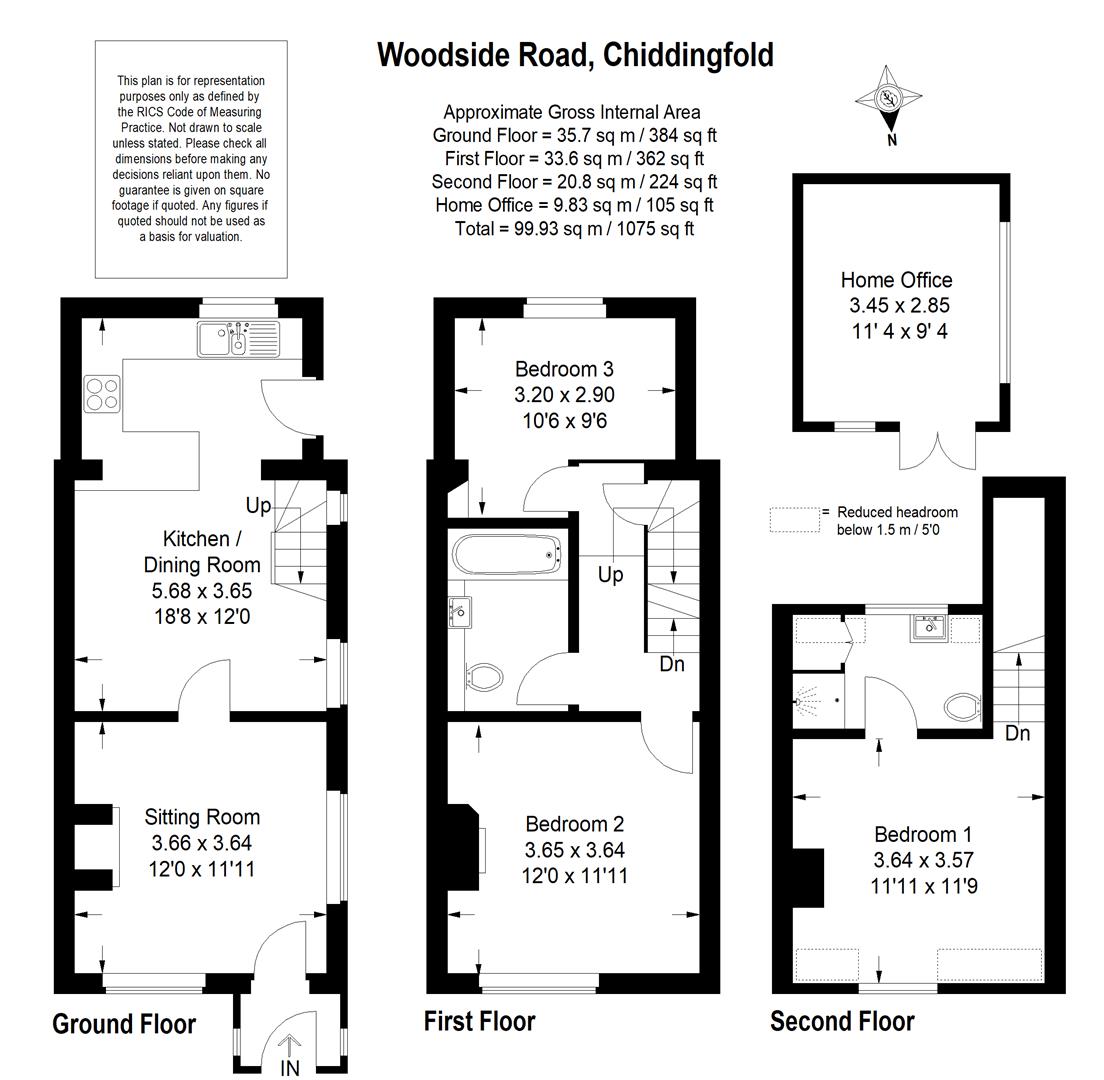 A tastefully refurbished three bedroom, three storey end of terrace house offering spacious and adaptable family accommodation. The house also benefits from a south facing rear garden with useful home office and occupies an enviable location being within easy reach of the village centre and Witley main line station.